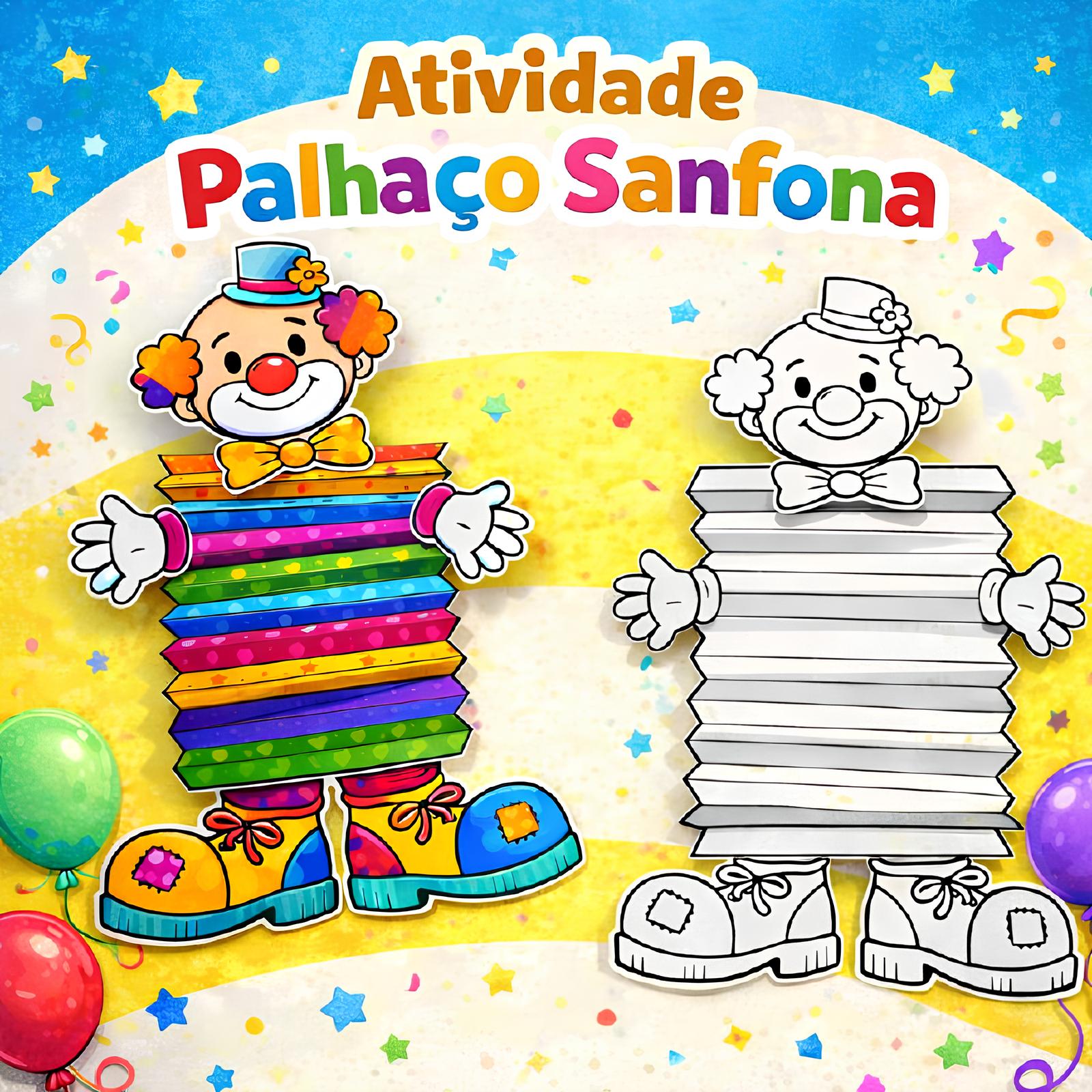 🎪🤡 Atividade Palhacinho sanfonado para colorir, recortar, dobrar e montar. Uma atividade divertida que estimula a coordenação motora, a criatividade e torna a comemoração do Dia do Circo ainda mais especial.