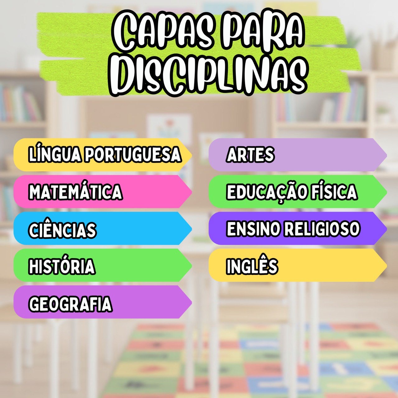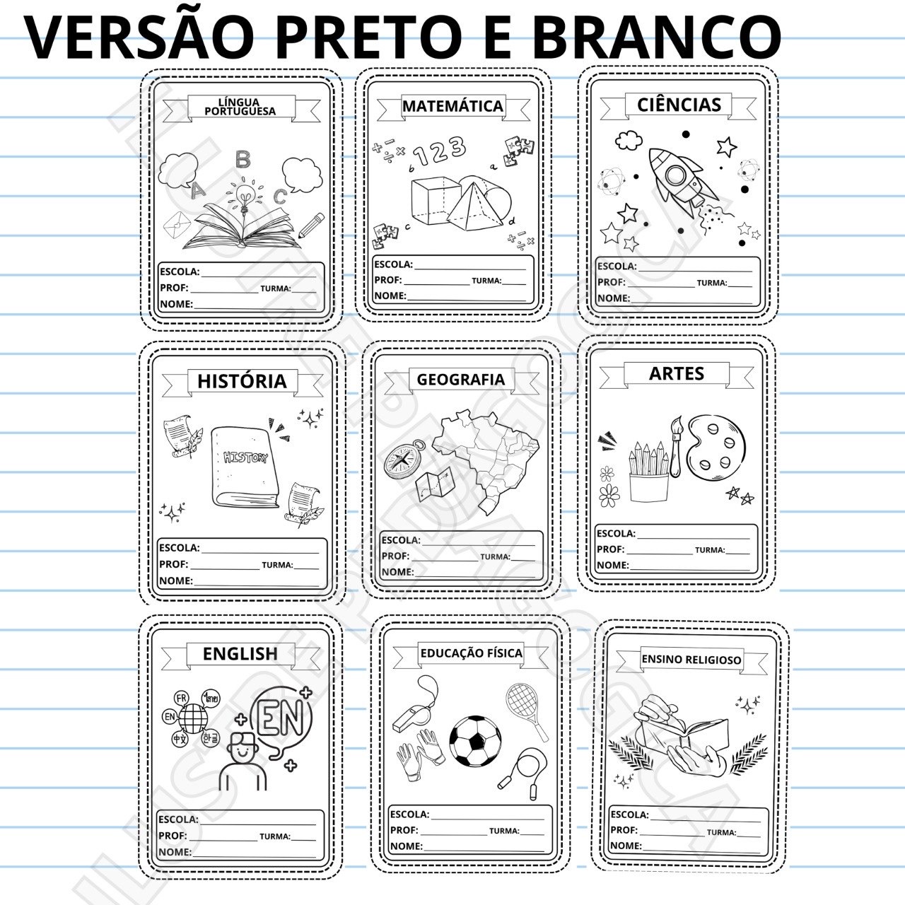 ✅ Capas exclusivas para 9 disciplinas escolares ✅ Design criativo e colorido✅ Arquivos em alta qualidade para impressão