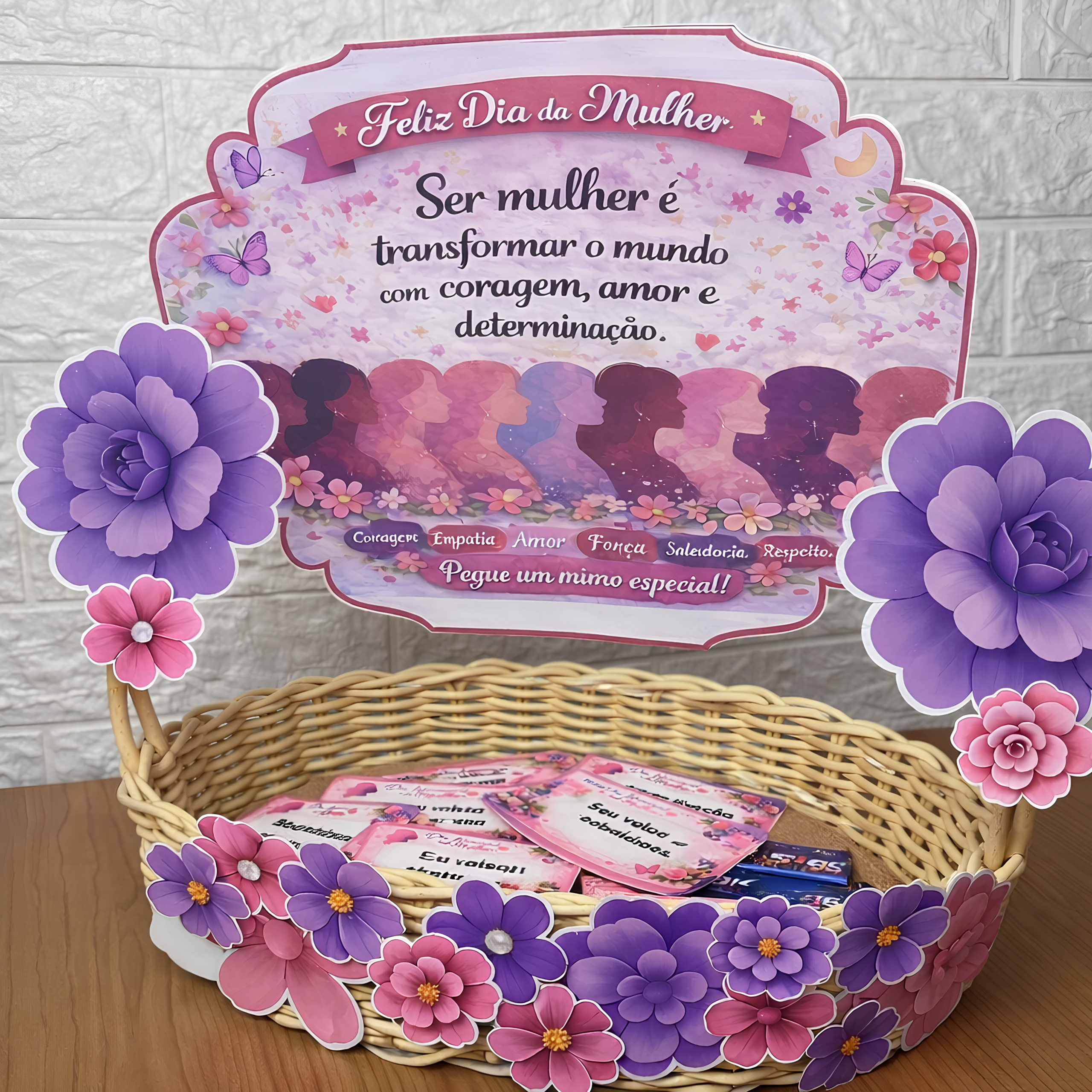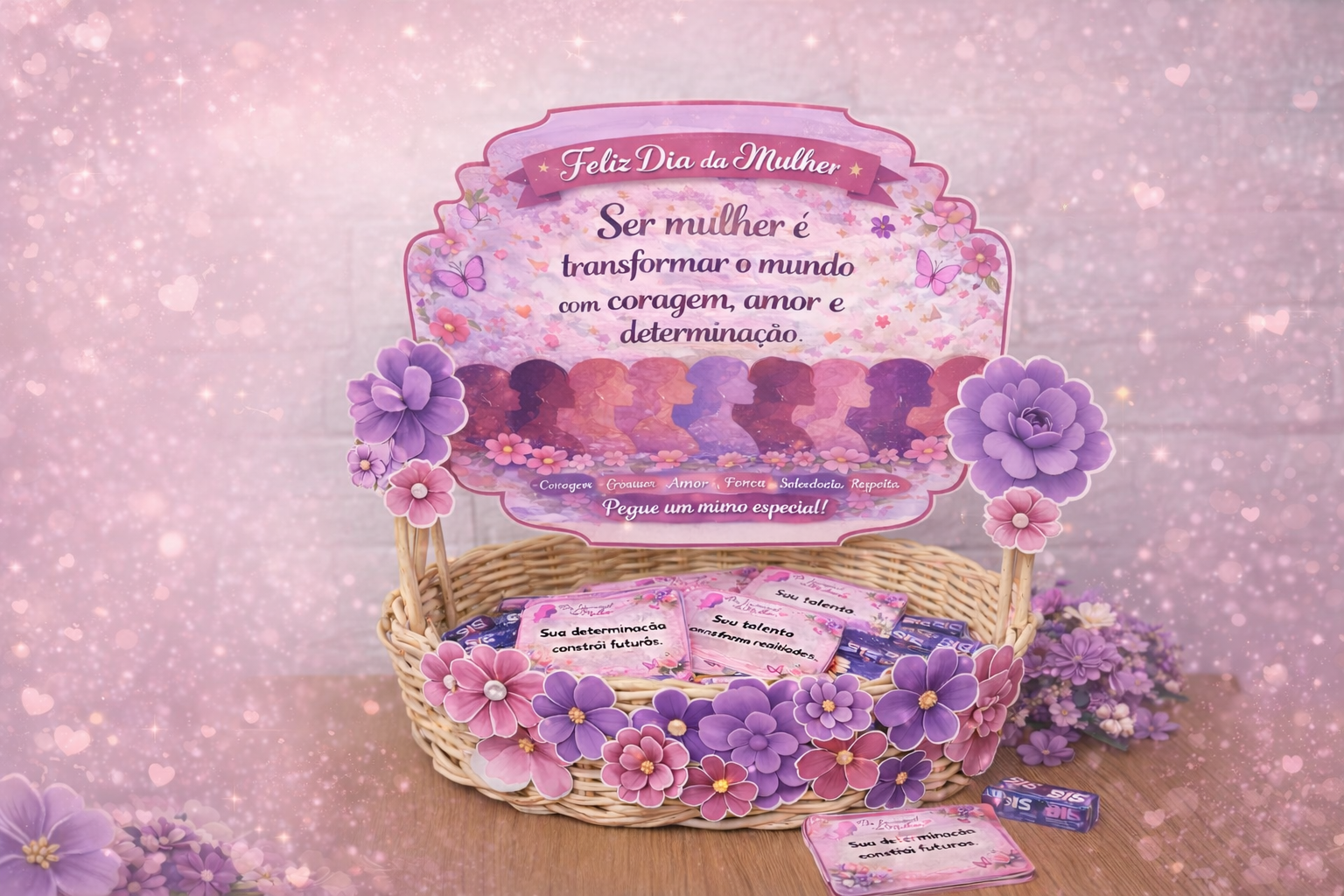 Arte floral delicada em tons de rosa e lilás Perfeito para escolas, empresas, igrejas ou lembrancinhas especiais!
